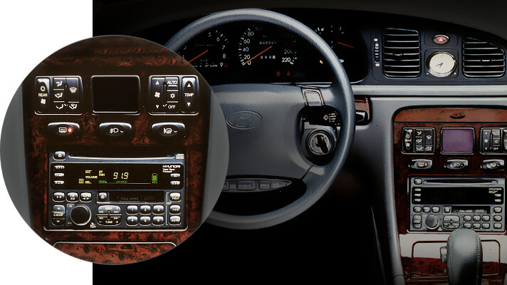 1세대 그랜저는 그 당시 최고급 차를 표방했기 때문에 현대차는 과감하게 CD플레이어를 추가한 2-DIN 오디오 시스템을 선보였습니다.