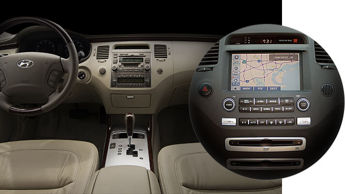 4세대 그랜저(TG)는 센터페시아가 좀 더 인체공학적으로 바뀌었으며, 7인치 컬러 터치스크린을 적용했습니다.