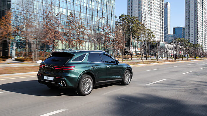GV70은 도심형 럭셔리 SUV를 표방하고 있으며, 제네시스 디자인을 계승했으며, 역동성을 강조한 날렵한 디자인이 돋보입니다.