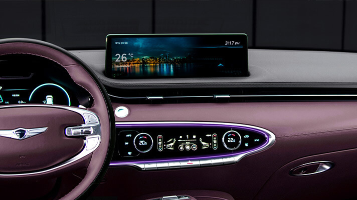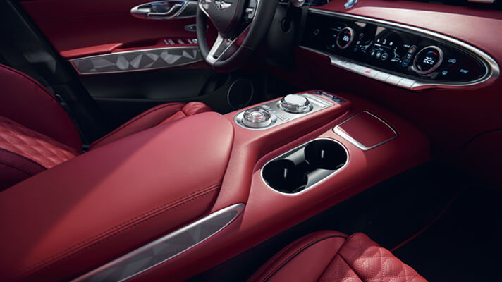 전형적인 레드가 아니라 퍼플이 가미된 젊은 감각의 레드 컬러로, GV70의 날렵한 이미지와 잘 맞습니다.