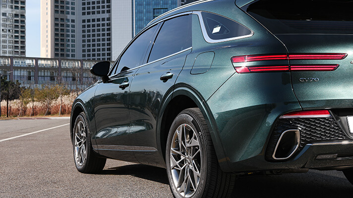 아울러 세로형 머플러 팁, 그리고 지-메트릭스 패턴의 장식으로 이루어진 범퍼로 인해 독특하고 개성적인 GV70의 디자인을 완성했습니다.