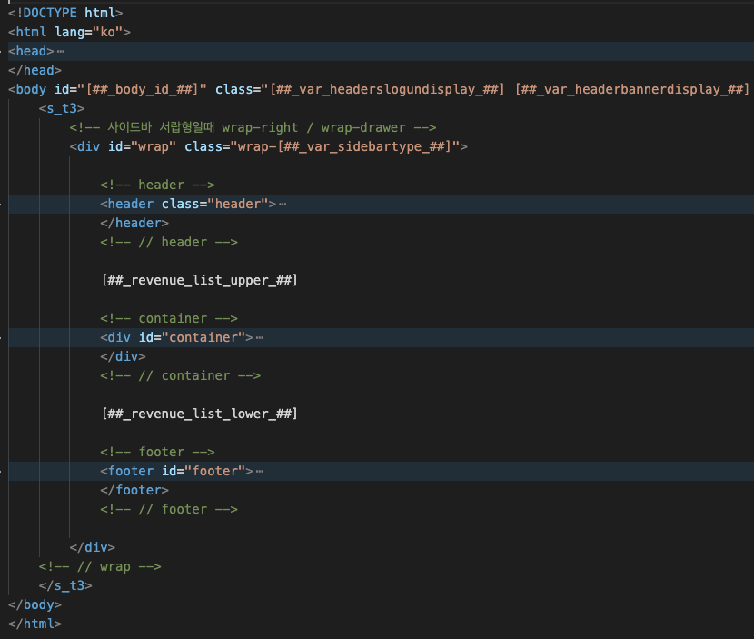 다음으로 가장 중요한 <div id="container"> 태그 안을 살펴보겠습니다.