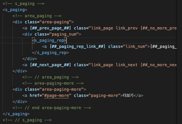 마지막에 있는 <s_paging>은 글이 많을 때 1,2,3.... 9 페이지를 뜻하는 거 같은데 우리한테는 이것도 필요 없습니다.