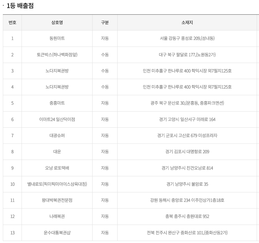 그런데도 1등 당첨자가 13명이라는 뜻은 자동이 많았다고 볼 수 있는데, 한번 확인해 볼까요?