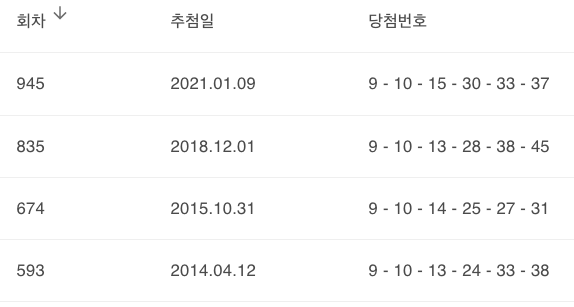 특히나 9번 다음에 10번이 나온 경우는 총 4번있습니다.
