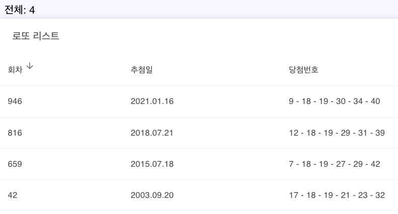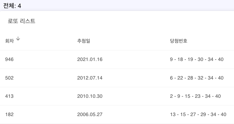 참고로, 34번 40번으로 끝나는 당첨번호는 역대 4번만 나왔습니다.