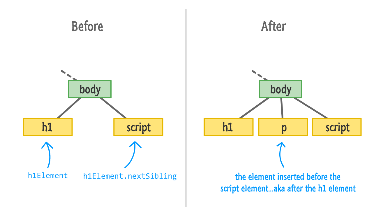 스크립트 요소 앞에 newElement를 삽입하면 h1 요소 뒤에 요소를 삽입한다는 목표가 달성됩니다.