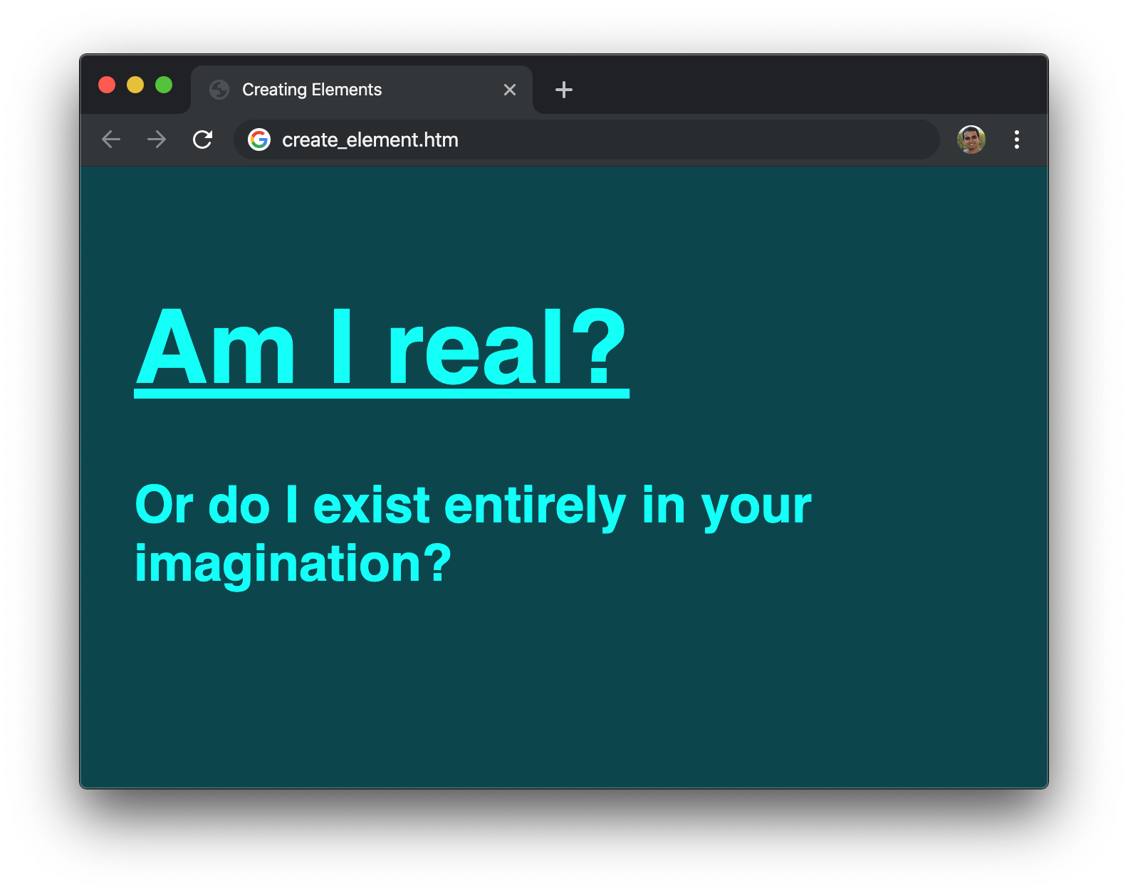 newElement.textContent = "Or do I exist entirely in your imagination?";