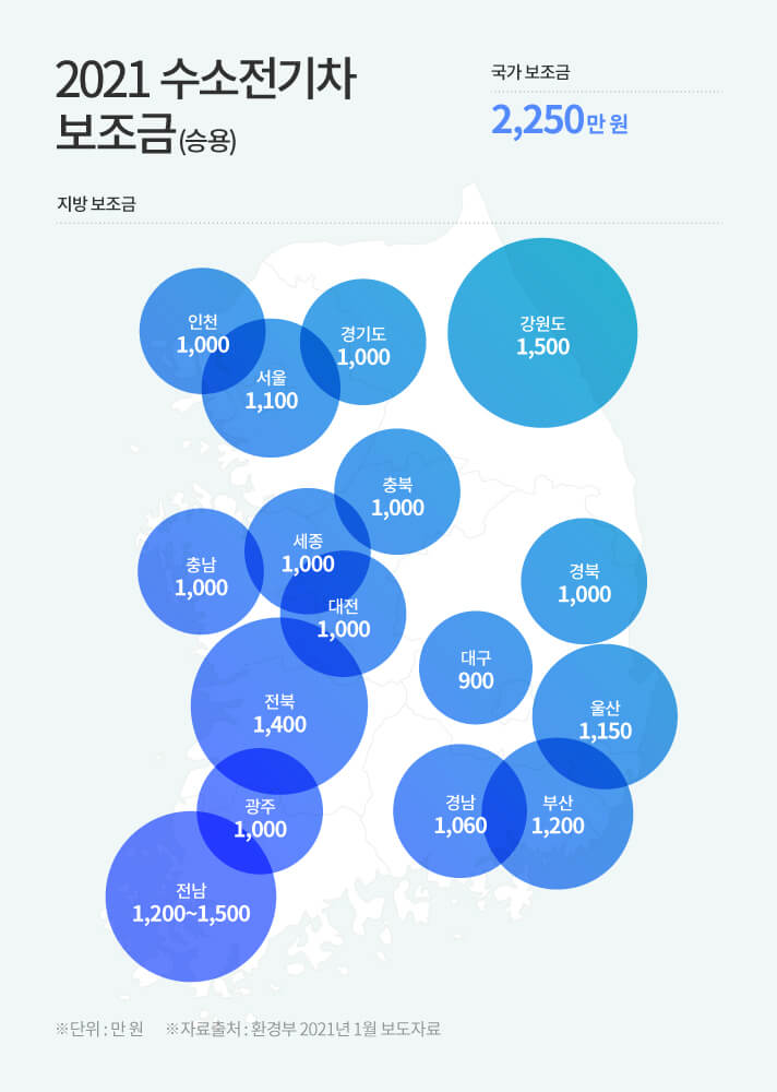 수소전기차 정부 보조금은 지난해와 동일한 2,250만 원으로 책정됐다.