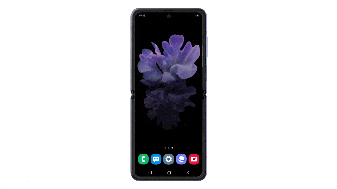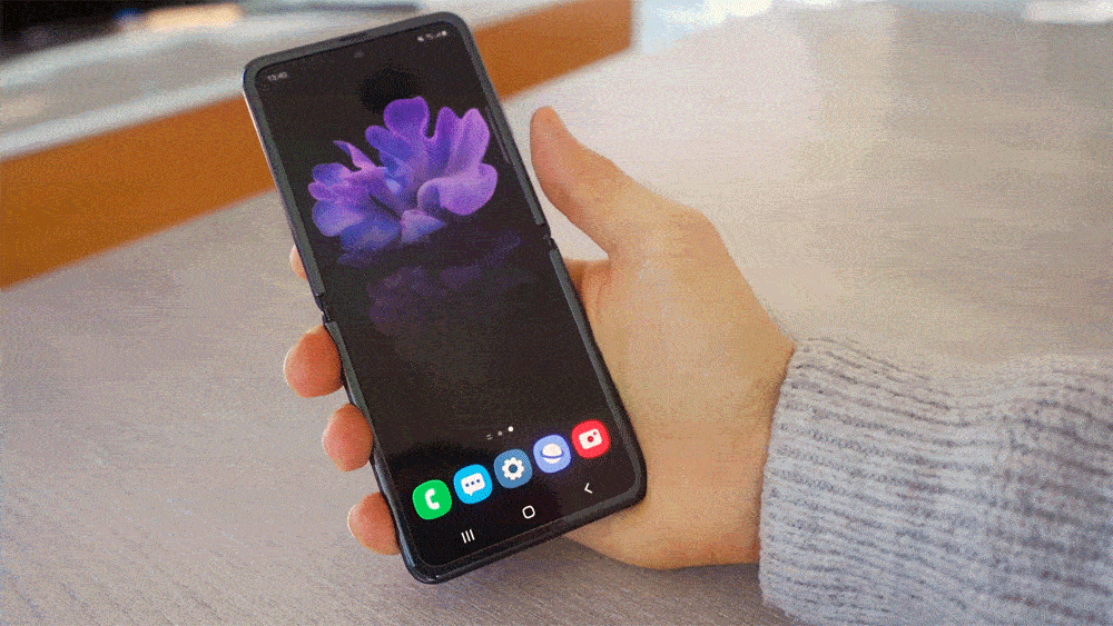 갤럭시 Z 플립을 열고 왼쪽에서 오른쪽으로 쓸어주면 된다. 같은 공간에 있는 동료들과 함께 통화할 때 무척 유용할 것.