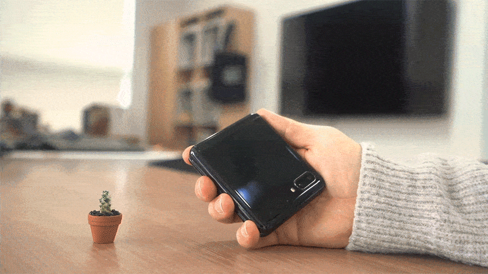 갤럭시 Z 플립은 한 손만으로도 메인 화면의 구석까지 사용할 수 있는 센스 있는 기능을 탑재했다.