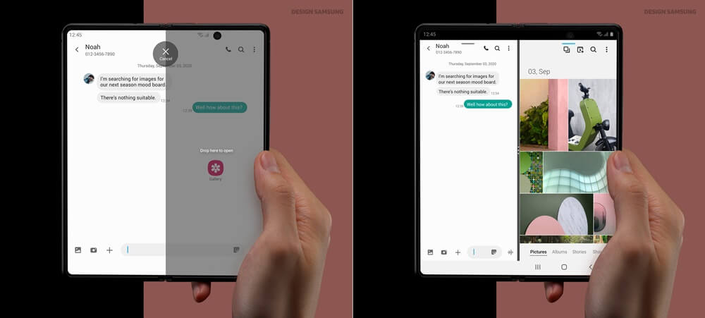 접은 상태로 영상 통화하며, 아래 분할 화면을 통해 메모를 남기는 등 사용자의 패턴에 맞춰 동시에 다양한 일을 처리할 수 있다.