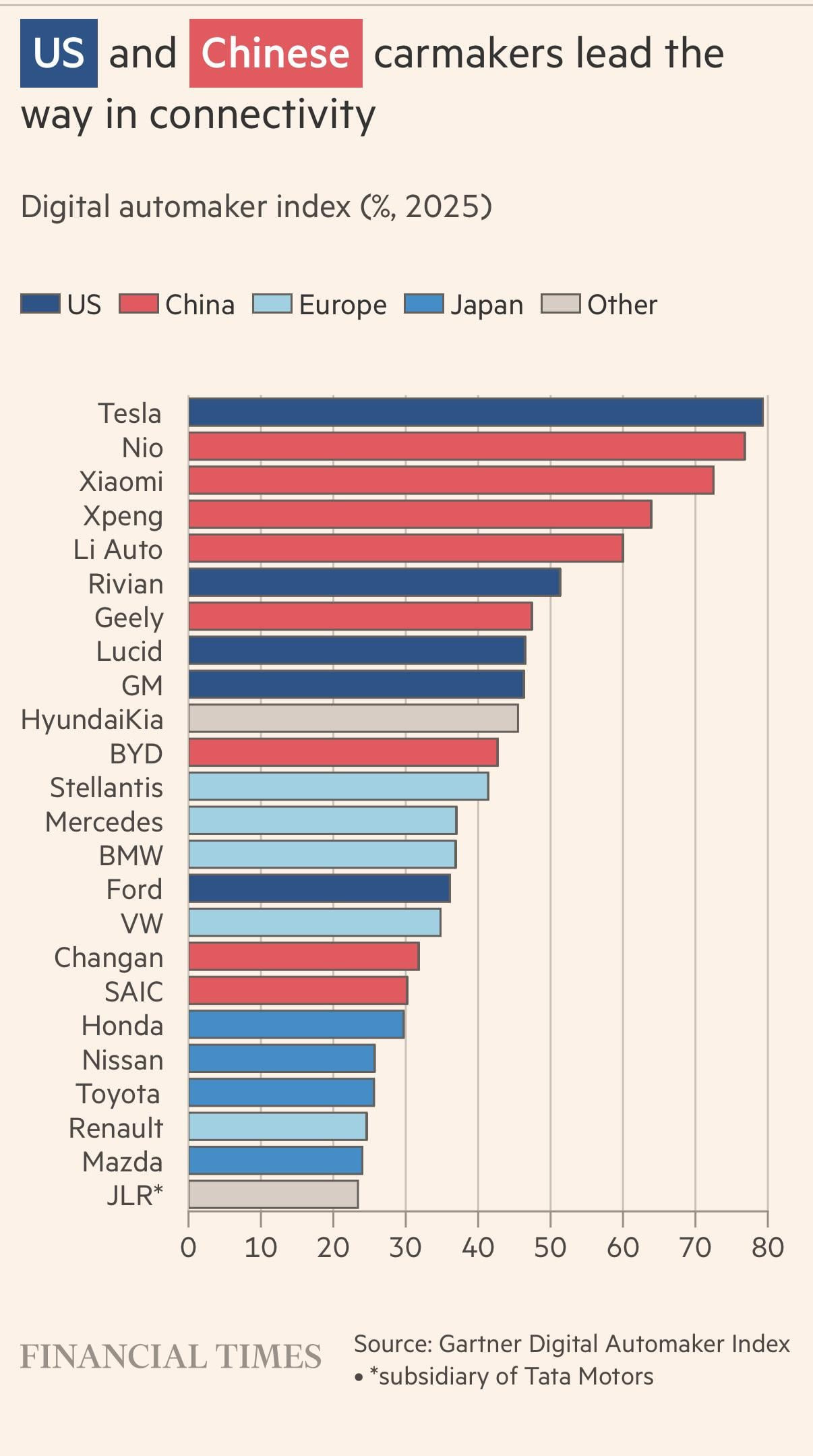 최근 자동차 소프트웨어 실력 순위가 공개됐는데, 중국이 1등을 먹고 전통의 강자 유럽과 일본이 하위권으로 밀려났더라고요.