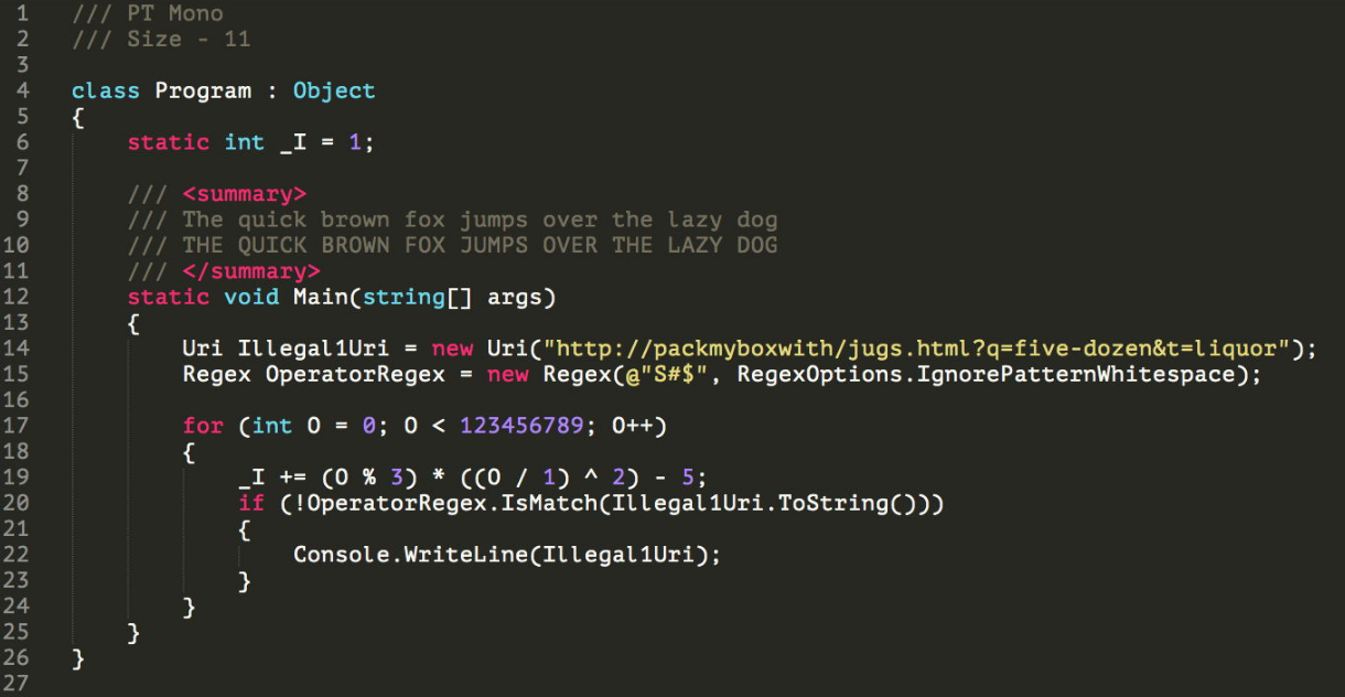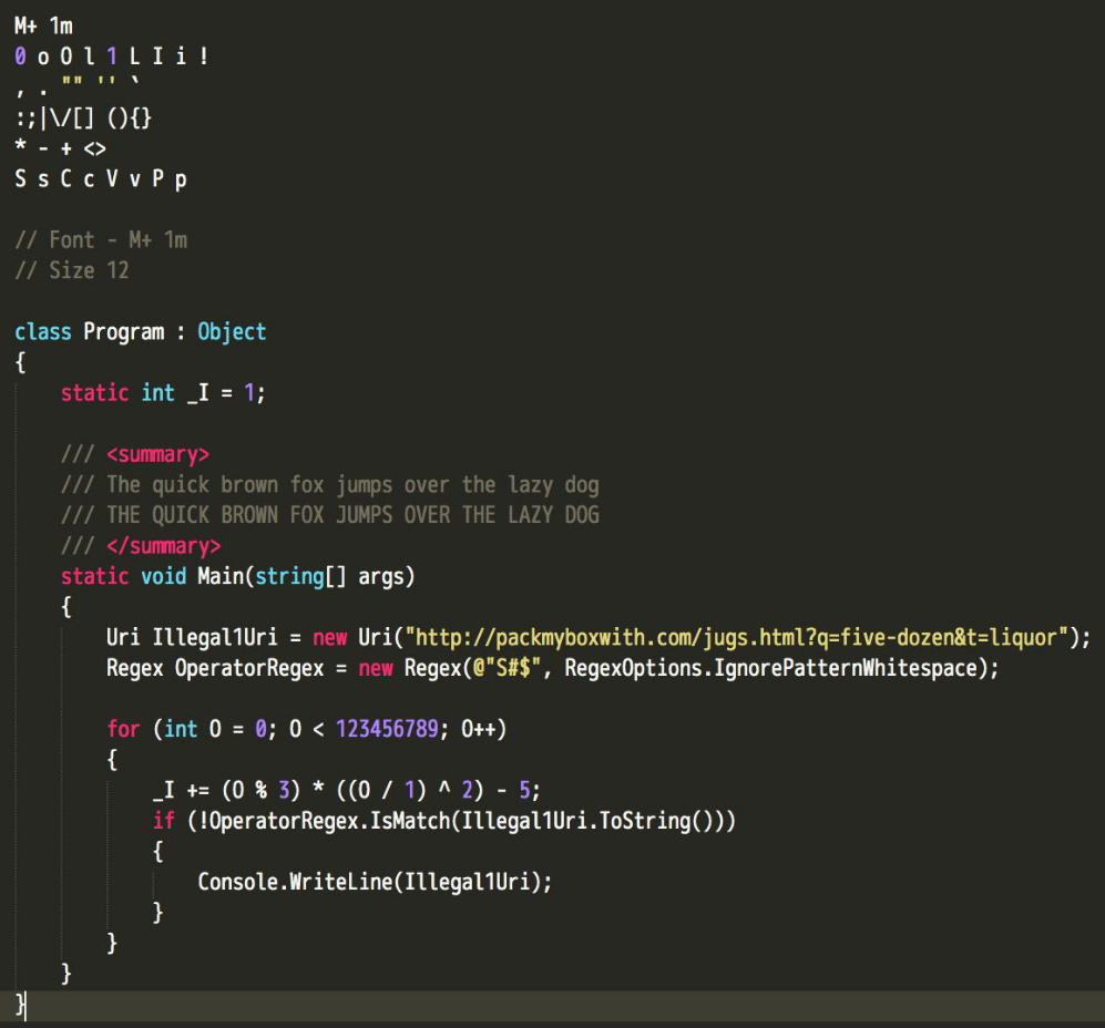 단점 : 12pt 사이즈 및 일반 두께에서 대문자가 정수 숫자보다 커서 16진수 숫자가 이상하게 보일수 있음.