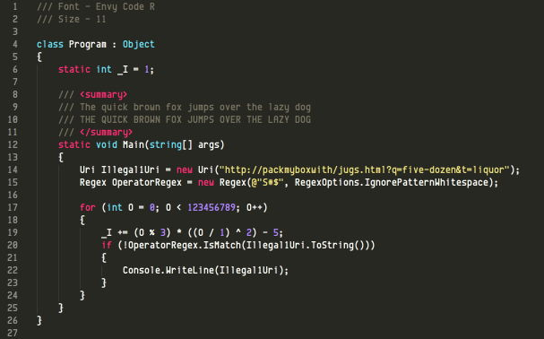 Envy Code R preview #7 (scalable coding font)