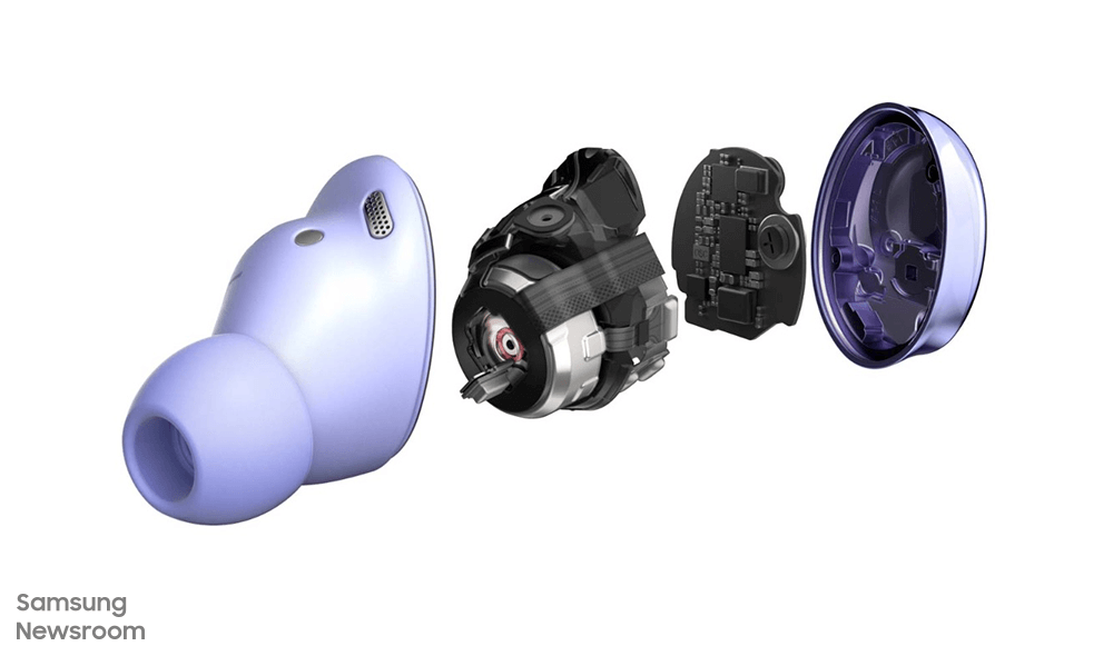 갤럭시 버즈 프로 속에는 6.5mm의 트위터, 11mm의 우퍼로 구성된 2-way 드라이버가 탑재되어 있다.