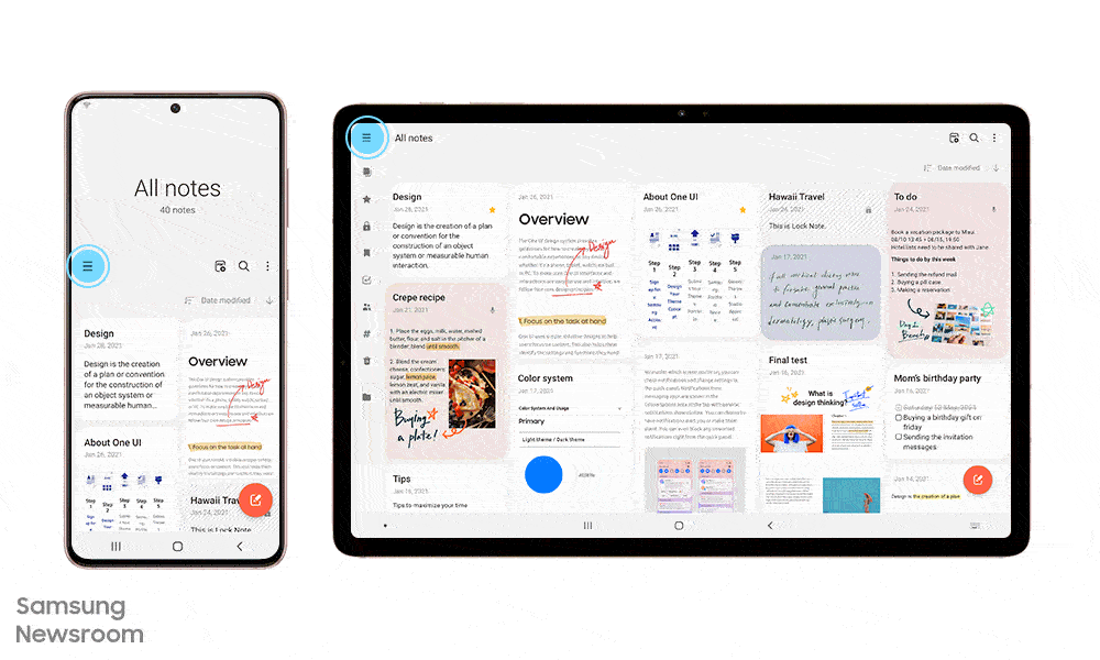 최근 실시된 One UI 3.1에서 강화된 ‘기기 간 연결성’에 대해 장민영 디자이너는 “스마트폰으로 실행 중이던 인터넷 사이트나 삼성 노트 앱에서의 작업을 태블릿에서 그대로 이어서 작업할 수 있는 ‘다른 기기에서 앱 이어서 사용’이 추가됐다”고 설명했다.