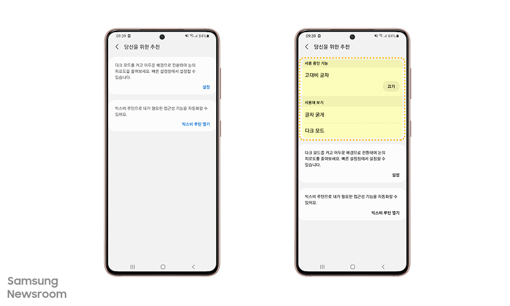 접근성 기능 중 사용자 패턴에 따라 유용한 기능을 보여주는 ‘당신을 위한 추천’도 네 번째 원칙과 맞닿아 있다.