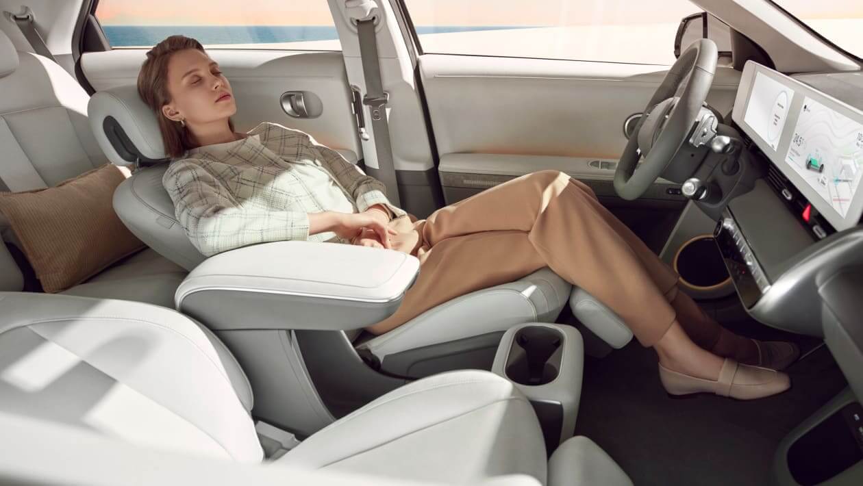 앞 좌석을 완전히 기울일 수 있어 탑승자가 이론상 차가 재충전되기를 기다리는 동안 낮잠을 자도록 할 수 있습니다.