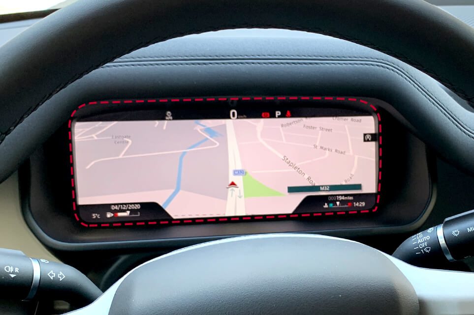 ‘운전석에 있는 속도 및 엔진 상태를 나타내는 계기판(Cluster)’,