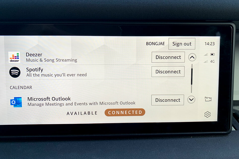 차량용 디스플레이는 차량과 차량 외부 다른 기기가 연결될 때, ‘커넥티비티 서비스(Connectivity Service)’를 하는 브리지(Bridge) 역할을 하고 있습니다.