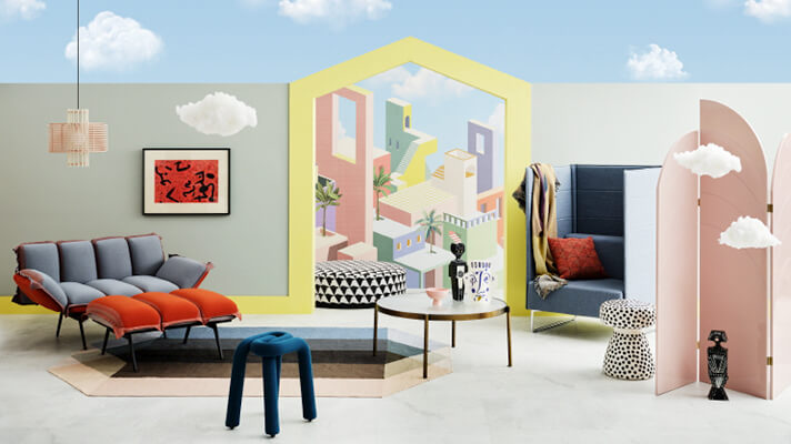 길어지는 집콕 라이프를 긍정적으로 극복하려는 사람들의 낙관주의에 주목해 파스텔컬러와 발랄한 디자인의 공간을 제안했죠.