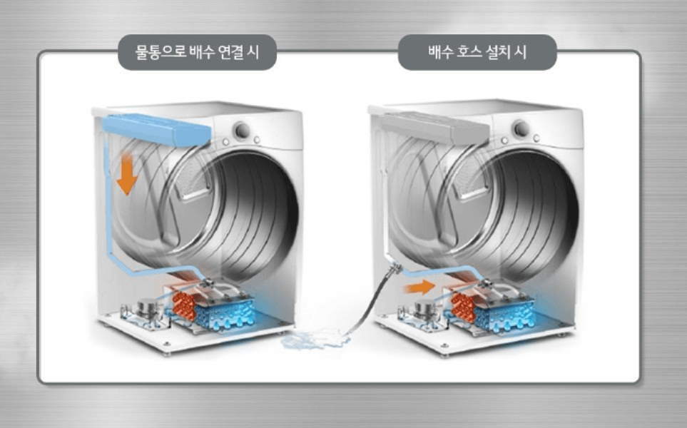 그리고 LG전자 의류건조기는 건조할 때마다 응축수 대부분을 물통으로 보내거나 배수호스로 배출합니다.