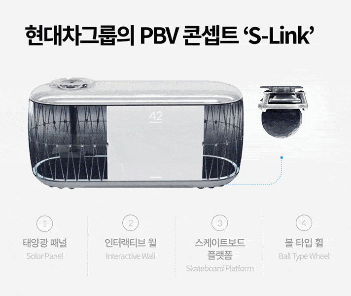 현대차는 2020년 CES에서 공개한 PBV 콘셉트 ‘S-Link’를 통해 전용 플랫폼 활용 방식을 제안했습니다.