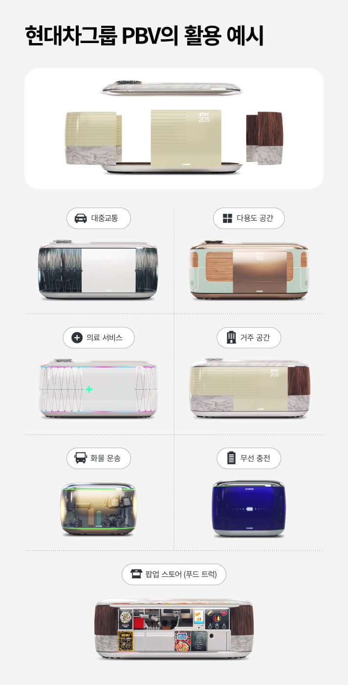 어떤 PBV와 결합하는지에 따라 터미널, 쇼핑몰, 호텔, 병원 등 Hub의 쓰임새도 변화하는 구조입니다.