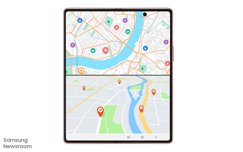 특히 갤럭시 Z 폴드2는 7.6형 크기의 다이내믹 아몰레드 2X 디스플레이로 경로를 한눈에 확인할 수 있다.