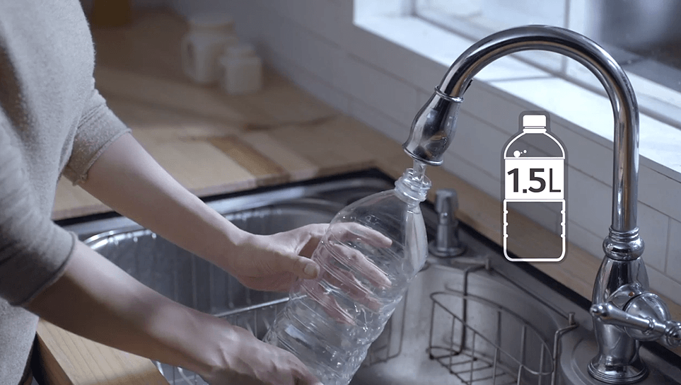 ③ 물 1.5 리터를 물통 투입구에 천천히 부어주세요.
