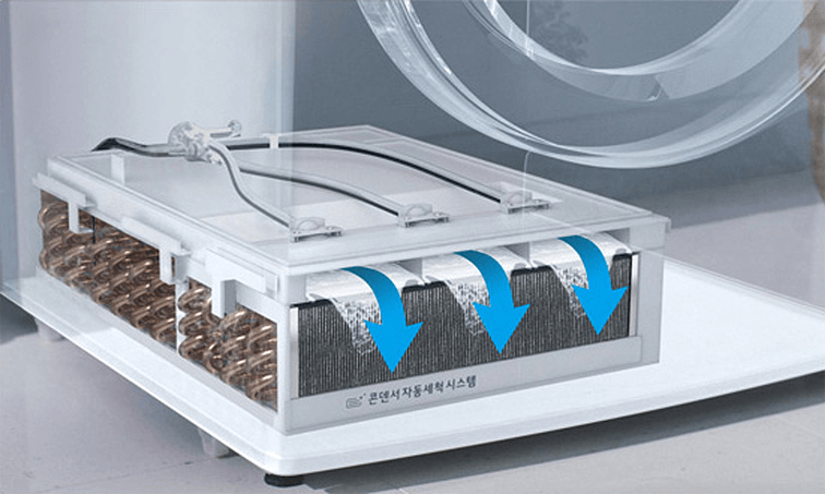 ‘콘덴서 자동세척 시스템’은 의류 건조 코스를 이용할 때마다 콘덴서를 자동으로 세척해 줍니다.