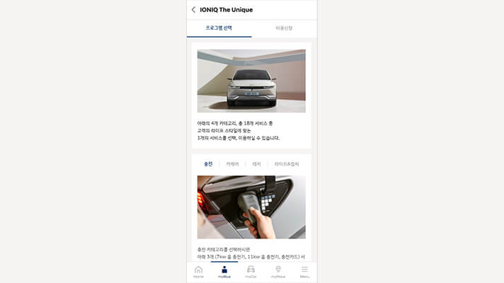 마이현대는 전기차를 타는 고객의 편의성 향상을 위해 전기차의 특성을 고려했다.