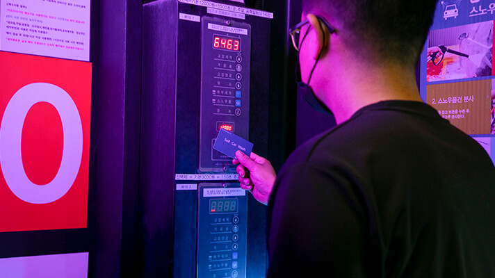 우선 사무실 카운터 또는 발급기에서 카드를 발급/충전하고 세차 기기의 기능을 조작하면 된다.