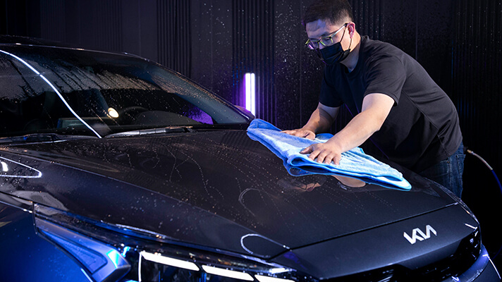 세차 부스에 도착하면 곧장 엔진 시동을 꺼 차체의 열을 식혀주는 것이 중요하다.