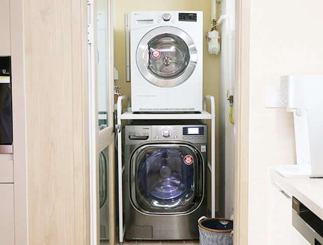 전기 콘센트만 있으면 어디서든 사용할 수 있고, 세탁기 위에 설치할 수 있는 등 공간의 제약도 없습니다.