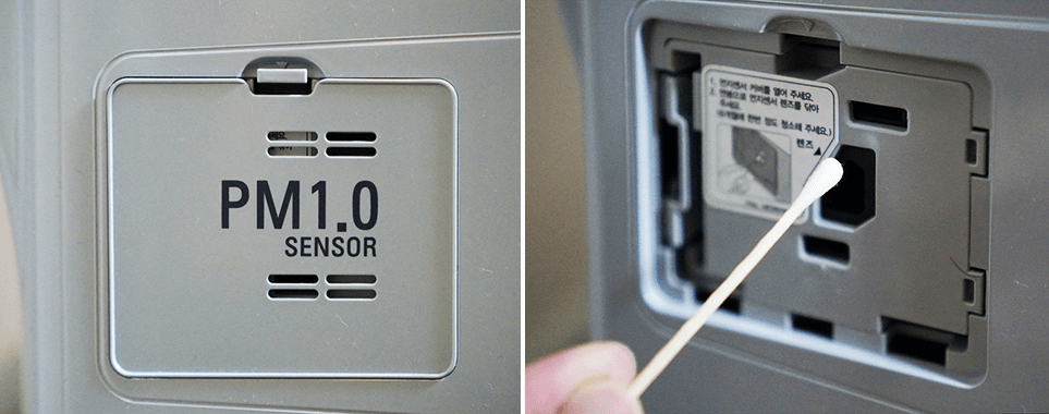 PM 1.0 먼지센서 청소를 정기적으로 해야 미세 먼지와 큰 먼지의 오염도를 감지해 공기청정 능력을 잘 유지해줍니다.
