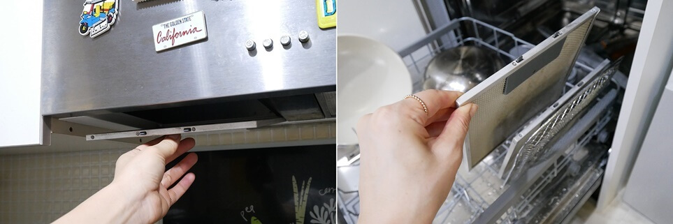 기름때가 잘 끼는 후드 망을 식기세척기를 이용해 세척하면 깨끗하게 관리할 수 있습니다.