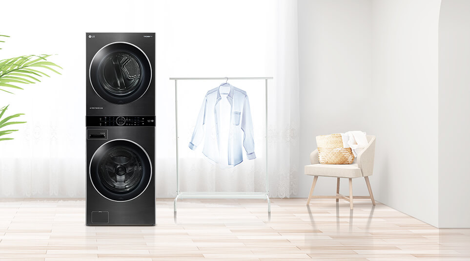 LG 워시타워는 세탁기 위에 건조기를 연결해 하나로 합친 국내 최초, 국내 유일 원바디 세탁건조기입니다.