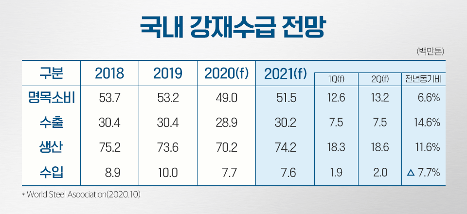 세계 경기 회복에 따라 국내 철강 수요와 수출도 증가할 것으로 보인다.