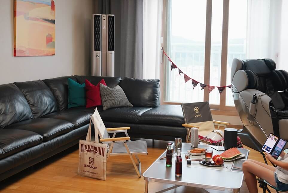 미세먼지가 짙은 날은 캠핑에 걸림돌이 될 수 있지만 홈캠핑할 땐 외부 날씨를 신경 쓰지 않아도 되니 걱정할 일이 없습니다.