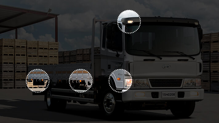특히 먼지나 진흙 같은 오염물이 묻을 확률이 높은 상용차의 경우 후미등의 일부가 가려지기 쉬워 차폭등은 야간운행 시 더욱 중요한 등화장치라고 볼 수 있습니다.