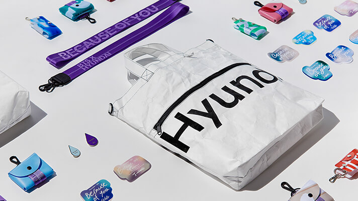 현대자동차는 해당 이벤트들 참가자 중 추첨을 통해 굿즈 6종(에코백, 키 커버, 멀티 포켓, 스트랩, 배지, 스티커) 세트를 경품으로 제공했습니다.