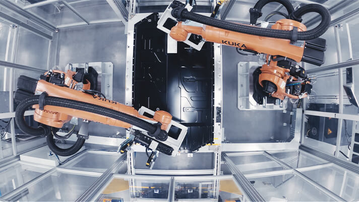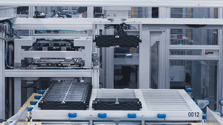 개별 셀의 위치가 배터리 품질에 결정적인 영향을 미치기 때문에 0.2mm 편차 범위 내에서 정확한 위치에 셀을 옮긴다.