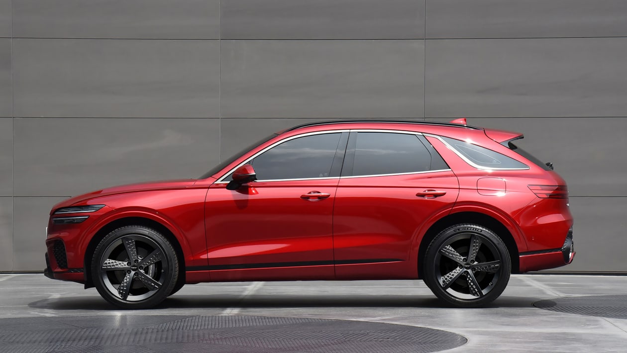 내부의 SUV는 가죽 커버와 알루미늄 트림이 조화를 이루고 있으며 Genesis는 항공 공기 역학에서 영감을 받은 디자인 언어로 형상화되었습니다.