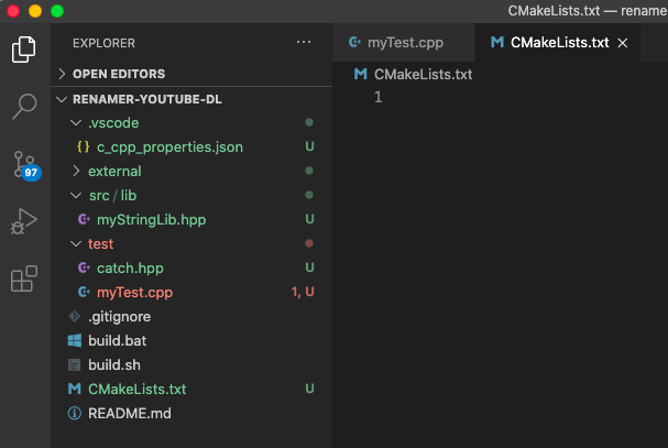 일단 프로젝트 상단에 최상위 CMakeLists.txt 파일을 만들고, test 폴더에도 CMakeLists.txt 파일을 만들어 자동으로 컴파일 및 유닛테스트가 실행되게끔 할 예정입니다.
