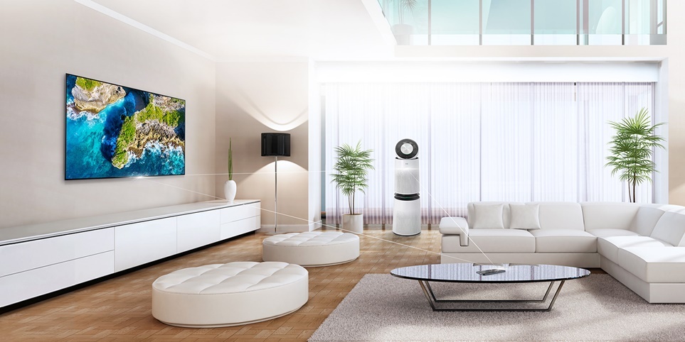 LG ThinQ 앱으로 집안의 여러 가전을 통합해서 관리할 수 있으며, 구글 어시스턴트의 다양한 음성인식 비서 서비스, 스마트홈 서비스를 이용할 수 있죠.