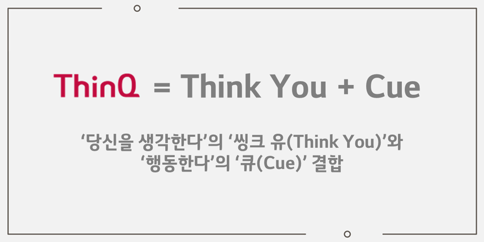 LG전자 인공지능 브랜드인 ‘ThinQ(씽큐)’는 ‘당신을 생각한다(Think you)’와 ‘행동한다(액션)’의 ‘큐(Cue)’를 결합한 이름입니다.
