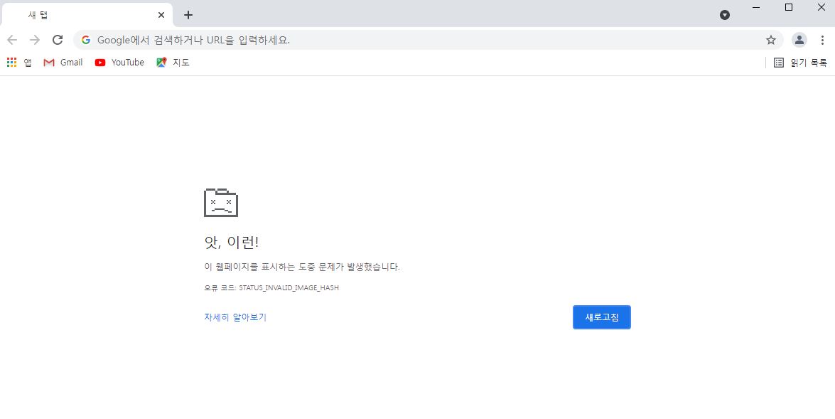 윈도우 10 처음 설치했을 때 크롬브라우저(Google Chrome)에서 status_invalid_image_hash 오류가 발생하는 경우가 있습니다.