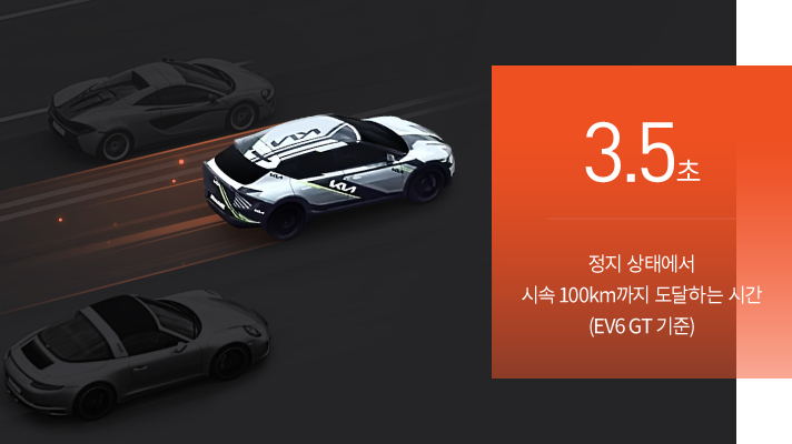 사람이 1회 호흡하는 데 4초 가량이 걸린다는 걸 감안하면 EV6 GT는 말 그대로 숨을 한 번 들이쉬었다 내쉬기도 전에 시속 100km까지 도달하는 셈이다.